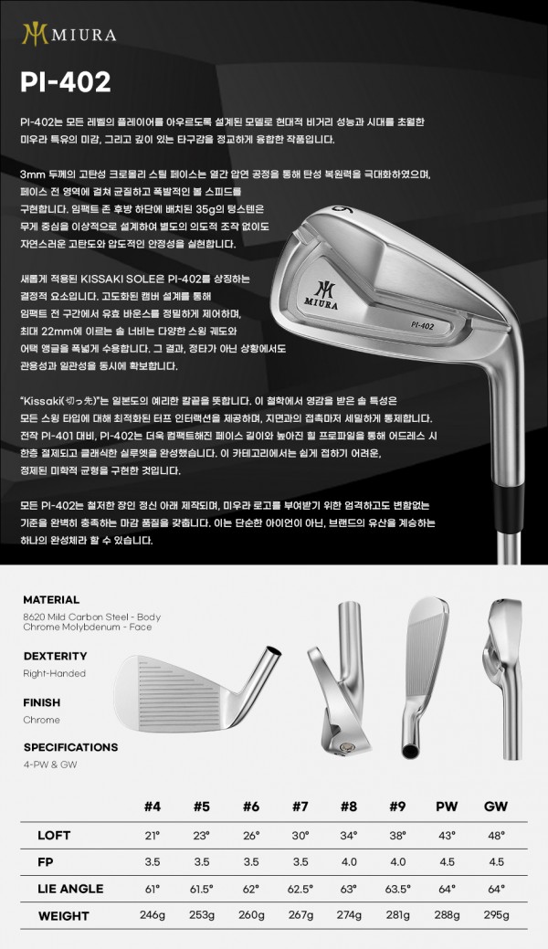 아이언의 하이엔드 미우라의 신형 PL-402 6번부터 ㅔ까지 그리고 48도 추가 작업 하였습니다.